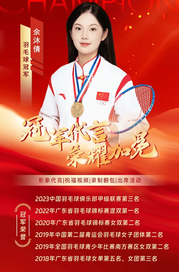 来自广东省的余沐倩是一名极具潜力的青年羽毛球运动员。从小就展现出对羽毛球运动的浓厚兴趣和卓越天赋。作为00后新生代运动员的代表,她用自己的努力在赛场上不断证明自己的实力。